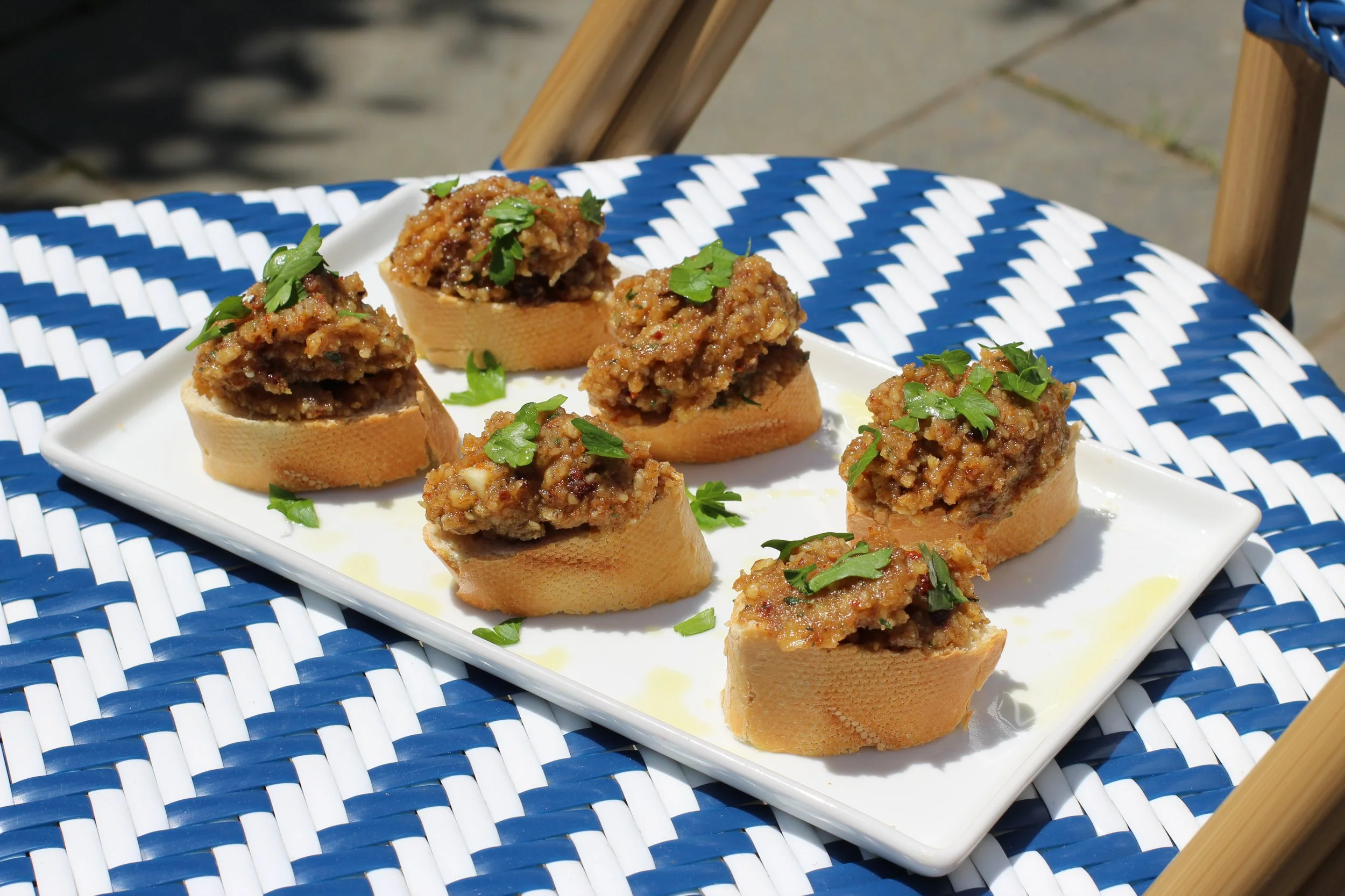 A recipe hailing from our favorite quaint French restaurant, Buvette, in the West Village, this pesto is a fabulous appetizer or bite paired with our French Martini!