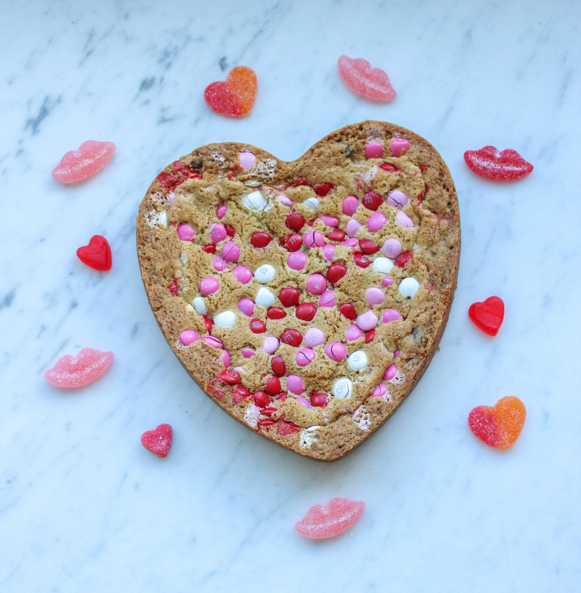 There is something about Valentine’s Day that is just hard to resist. Maybe it’s the pink and red combo, the abundance of hearts or the sweet sentiments of love, but we can’t seem to look the other way. And while we are excited for an excuse to create a special evening with our husbands, making special memories with the kids is always the most fun. We got this heart shaped cake pan a few years ago and made and wrapped a cookie cake with M&Ms or pink and red sprinkles for neighbors and teachers to spread some love - one of my favorite things to watch my kids do❣️This cookie cake is SO good you will want to make sure to keep one and spread some self-love 💌
