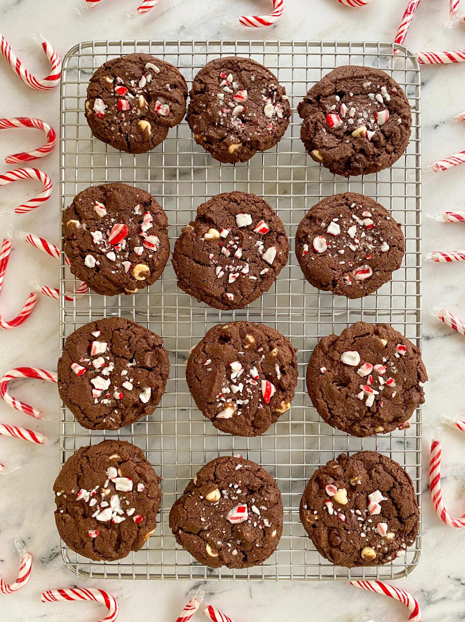 One of my friends always delivers the best Scottish shortbread, another spiced saltines, another the best hot and sour mustard. Homemade Christmas Gifts are such a special thing, and friends look forward to your delivery every year. This week we are going to highlight a bunch of foods that are perfect for gifting. Let’s start with the most delicious cookie. The abundance of peppermint chocolate is one of Christmas’s true gifts! So, we put that into a cookie, and these are not only festive but also the most delicious! Gift these to your neighbors, make these for your next cookie exchange, or have them be a fun holiday baking project with your kids 💫🎄